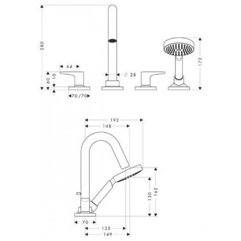 - Pro odeslání do Česka navštivte Hansgrohe AXOR CITTERIO M Čtyřotv. armatura na okraj vany s ovl. páčkami, chrom 34444000