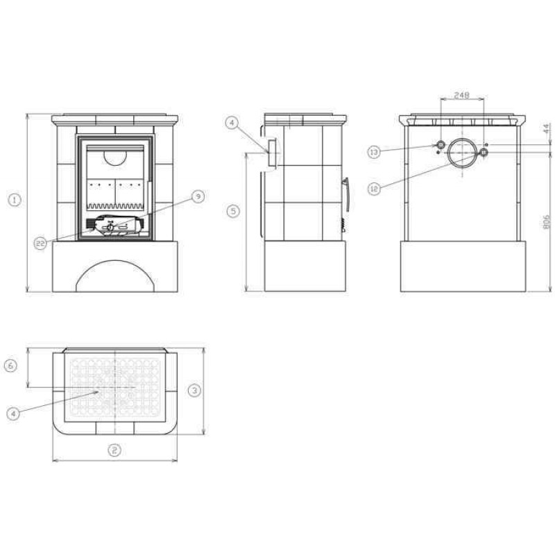 - Pro odeslání do Česka navštivte ABX Marina K TV výměník 4,2kW, Kachlová kamna na dřevo s kombi vložkou, zelená
