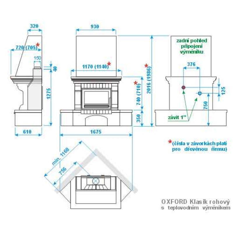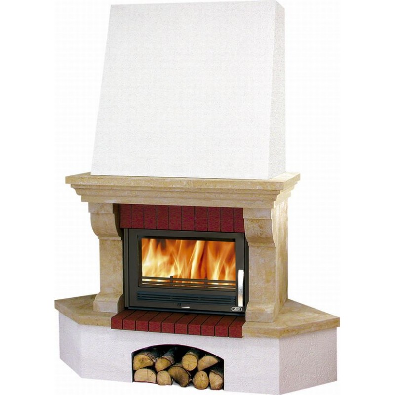 - Pro odeslání do Česka navštivte ABX Oxford Klasik TV výměník 7kW, Krb rohový, sokl bílý, římsa dřevo