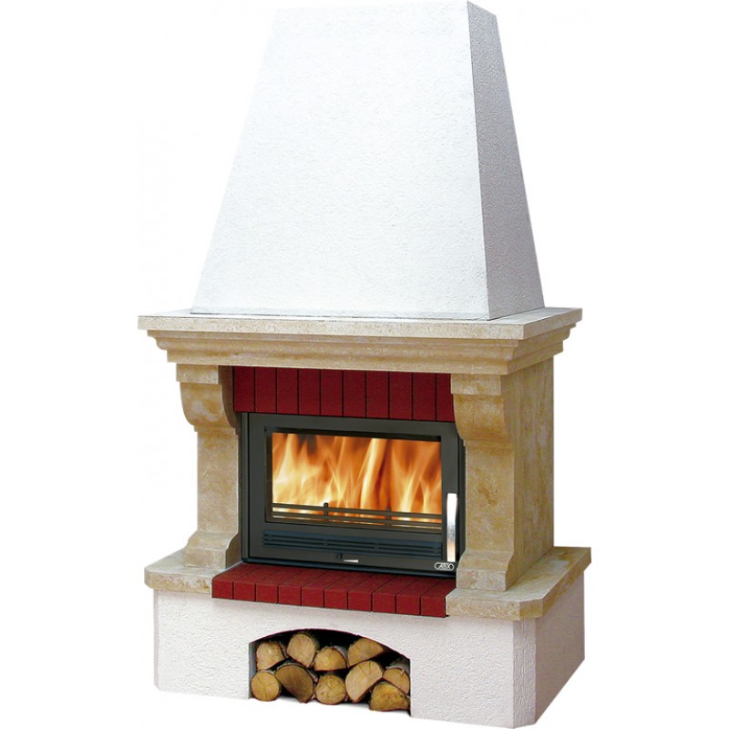 - Pro odeslání do Česka navštivte ABX Oxford Klasik TV výměník 7kW, Krb stěnový, sokl bílý, římsa dřevo