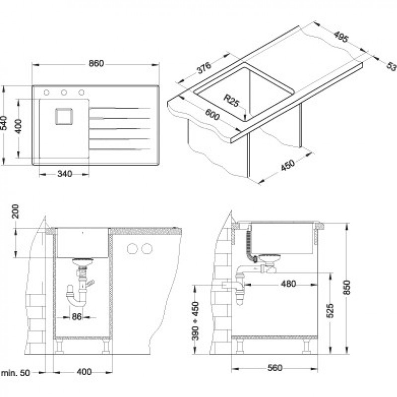 Min. Schrankbreite: 400 mm