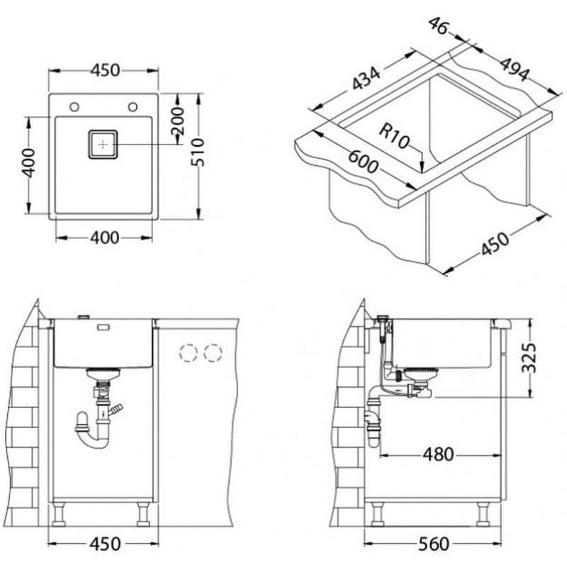 - Spülengröße: 450 x 510 mm