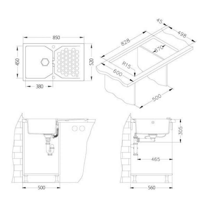 - Die Spüle wird mit 2 Löchern geliefert (für Wasserhahn- und Siebventilsteuerung).