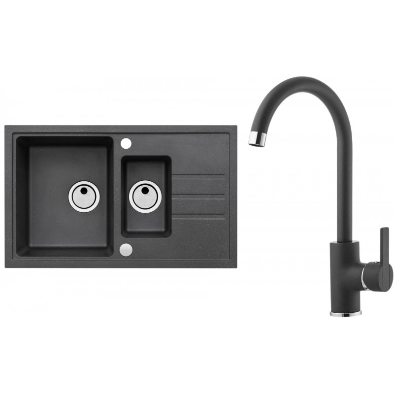 ALVEUS Set INTERMEZZO 70 Granitspüle 780x480 mm + Küchenarmatur TONIA, schwarz