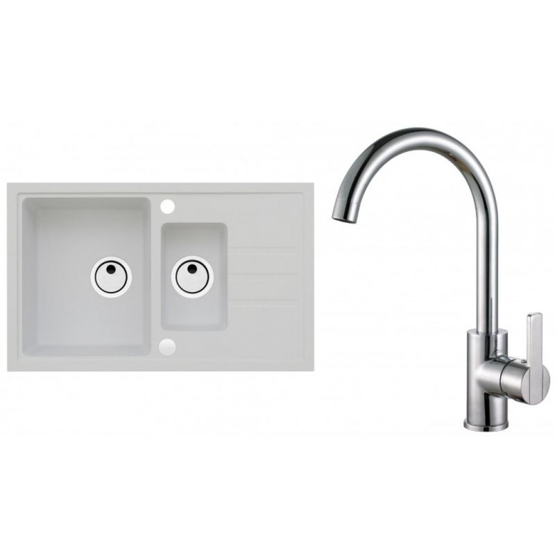ALVEUS Set INTERMEZZO 70 Granitspüle 780x480 mm + Küchenarmatur TONIA, weiß + Chrom