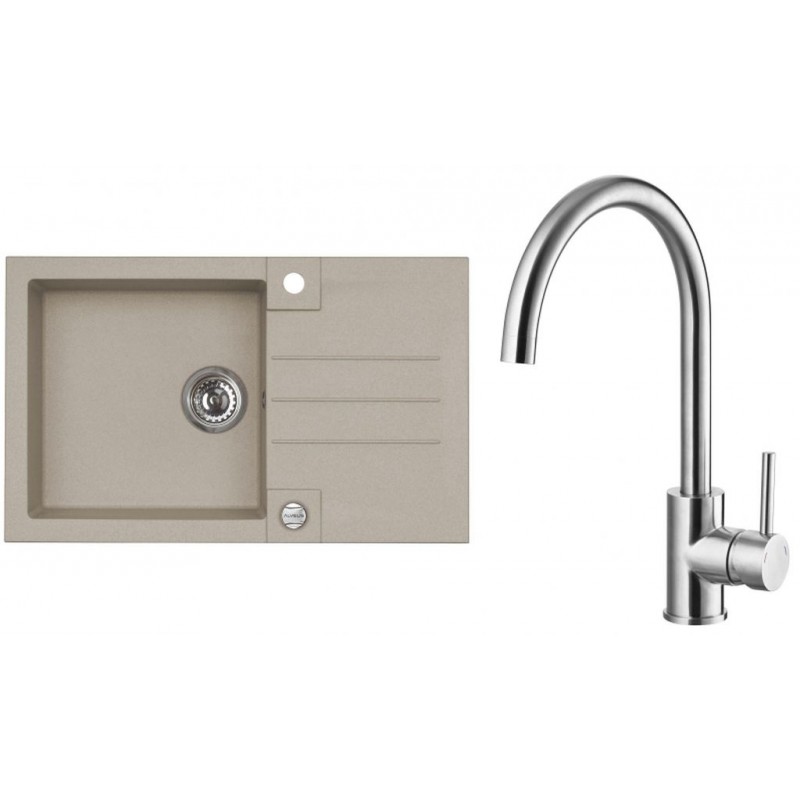 ALVEUS Set ROCK 130 Granitspüle 780x480 mm + Küchenarmatur ELZA, Pebble 02 + Edelstahl