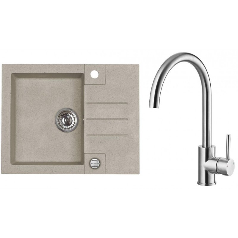 ALVEUS Set ROCK 30 Granitspüle 595x475 mm + Küchenarmatur ELZA, Pebble 02 + Edelstahl