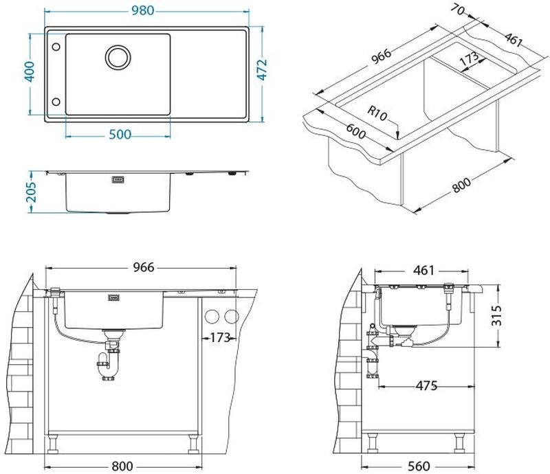- Einbauart: Flachenbündige Spüle (F) / Flachrand-Spüle (S)