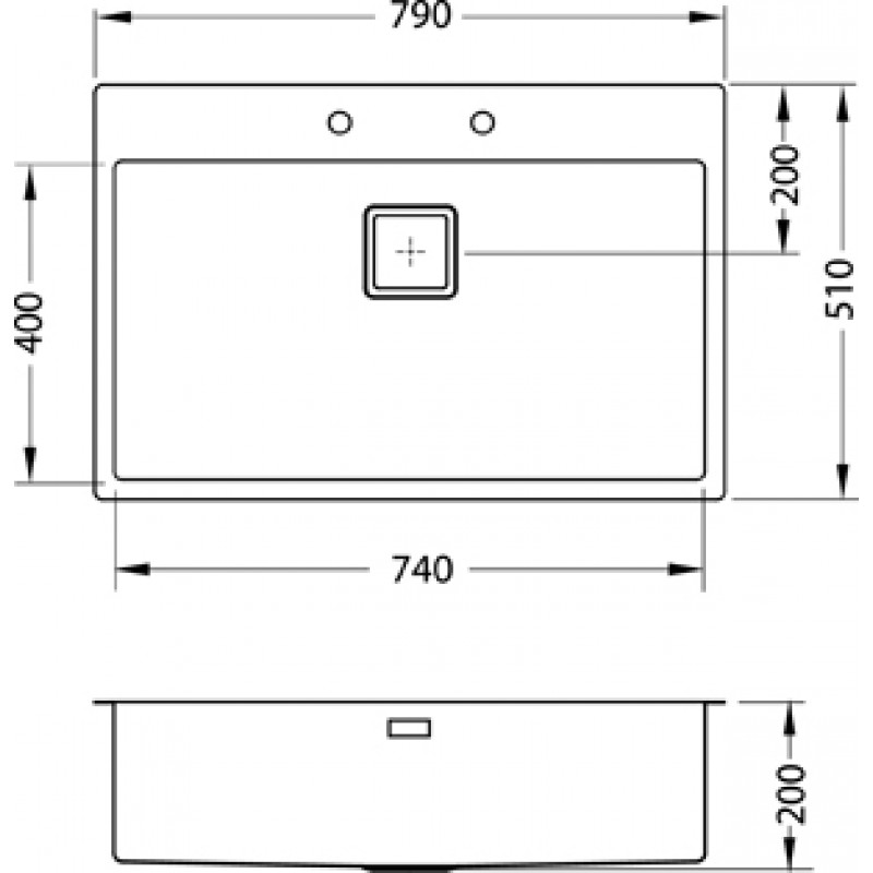 - Spülengröße: 790 x 510 mm