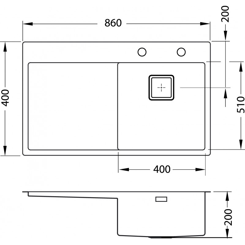 - Spülengröße: 860 x 510 mm