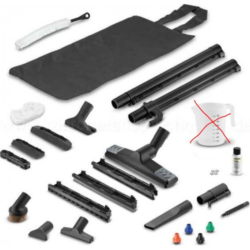- Bodenreinigungsset mit Dampfsaugfunktion, 3 verschiedene Einsätze für Hart- und Teppichboden und 2 Dampfsaugrohre a 0,5 m