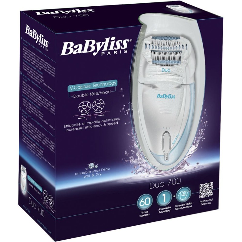 Der Wet& Dry Epilierer DUO 700 ist mit der innovativen V-Capture Technologie ausgestattet, durch die die Griffleistung jeder einzelnen Pinzette optimiert wurde, um noch sanfter und effizienter zu funktionieren. Dank ihrer V-Form entfernen die 60 Pinzetten schon beim ersten Durchgang ein Maximum an Haaren, sogar die allerkürzesten (0,5mm).Der doppelte Epilierkopf mit gegenläufiger Rotation schmiegt sich dabei an alle Körperkonturen an, um die Haare selbst an schwer zugängigen Bereichen sanft zu entfernen.