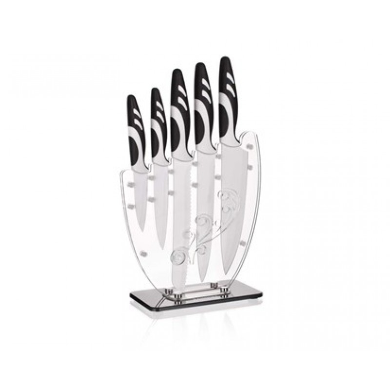 BANQUET 5 -teiliges Messer-Set Prisma Bianca 25LI0084155-teiliges Messerset mit Antihaftbeschichtung, enthält :1x Kochmesser 1x Brotmesser 1x Fleischmesser, 1 universales Messer, 1x praktisches Messer, 1x Ständer ( 22,5 cm, Höhe 25,5 cm).
