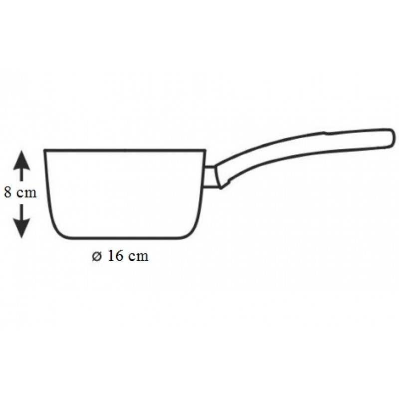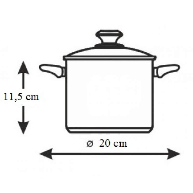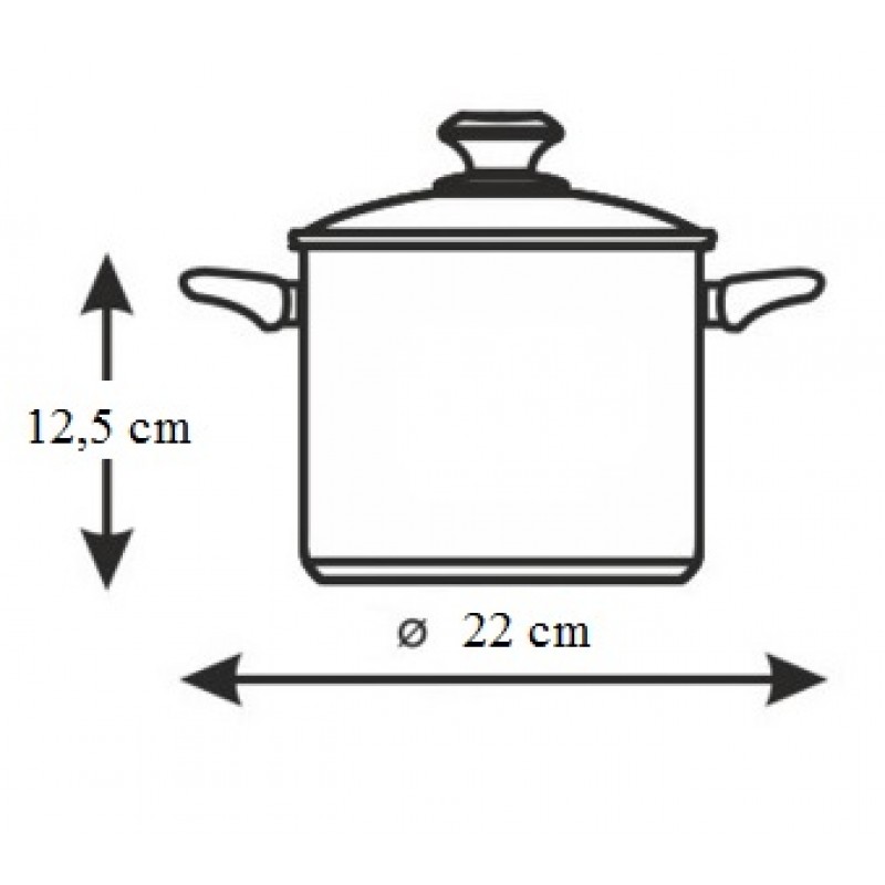 Kunststoffgriffe sind angeschraubt. Außen- und Innenfläche – glänzend. Topfe können auf allen Herdarten benutzt werden.