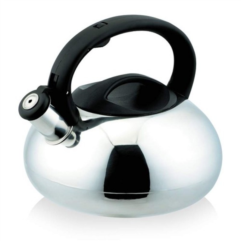 Flötenkessel aus Edelstahl, Griff aus Kunststoff. Praktischer Deckel ermöglicht einfaches Ausgießen. Geeignet für Elektro,Glaskeramik und Induktionsherde.Farbe: edelstahl-glänzend