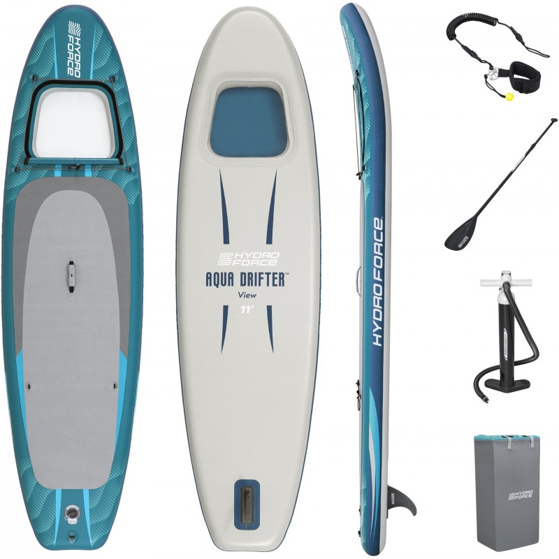 - 1 × BESTWAY Hydro-Force Aqua Drifter View SUP Freizeit Board-Set 335 × 91,5 × 15 cm