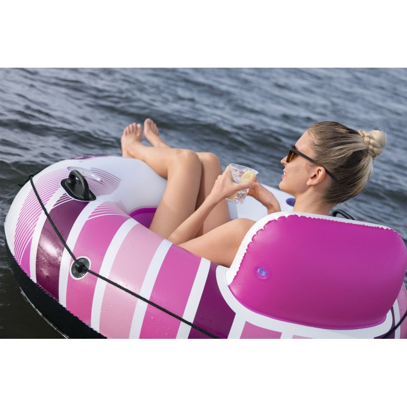 BESTWAY Hydro-Force Rapid Rider Schwimmring Pink ⌀ 122 × 48,5 cm sorgt für maximalen Badespaß und Entspannung im Wasser. Ob Pool, See oder ruhige Gewässer – dieser Schwimmring mit auffälligem Pink bringt Sommerfreude pur. Die integrierte Rückenlehne ermöglicht bequemes Anlehnen, während die Netz-Sitzfläche für angenehme Abkühlung sorgt. Einfach treiben lassen, Beine ins Wasser – entspannter Sommergenuss garantiert.