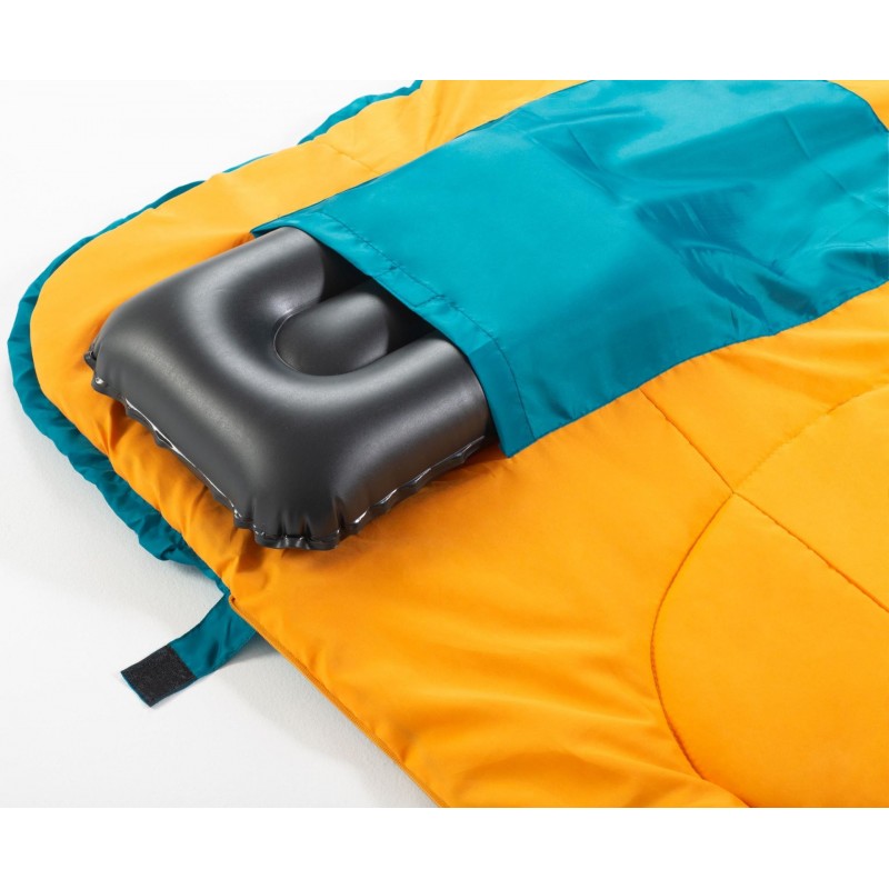 Im Pavillo™ Schlafsack Evade 5 werden Sie bequem und fest schlafen. Egal wo Sie schlafen, in einem Zelt, unter den Sternen oder in einem Haus mit allem Komfort, dieser Schlafsack ist angenehm isoliert, damit Sie die ganze Nacht lang gemütlich warm bleiben. Auch das aufblasbare Kissen trägt zu Ihrem Wohlbefinden bei. Das rechteckige Design ist kompakt, leicht und auf Ihren nächsten Trip mühelos mitzunehmen! Wenn der Schlafsack aufgerollt ist, halten Sie ihn mit den integrierten Elastikriemen zusammen, sodass Sie ihn leicht transportieren und aufbewahren können.
