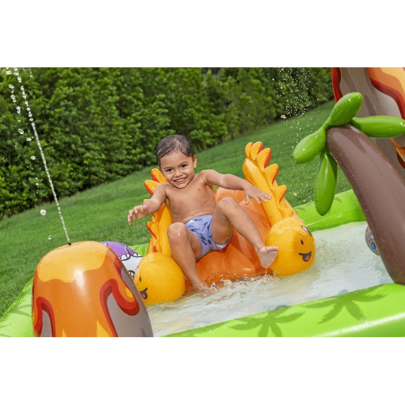BESTWAY Vulkan Wasserspielcenter 262 × 188 × 102 cm verwandelt jeden sonnigen Nachmittag in ein Abenteuer voller Spaß und Wassererlebnisse. Das aufblasbare Vulkan-Spielcenter bietet Kindern ein Planschbecken, eine Wassermatte und interaktive Spielelemente, die die Fantasie anregen und gleichzeitig für Abkühlung sorgen. Ideal für Gärten, Terrassen oder andere sichere, flache Flächen.
