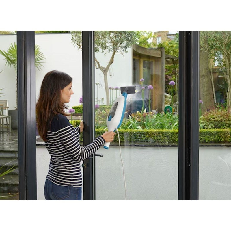 Der Dampfmopp ist bereits nach 25 Sekunden einsatzbereit und ermöglicht dank des 180° schwenkbaren Kopfes eine einfache Reinigung rund um Möbel und in Ecken. Der ergonomische Griff und das geringe Gewicht von 1,8 kg sorgen für eine komfortable Einhandbedienung. Das 4,8 m lange Kabel bietet ausreichend Bewegungsfreiheit. Das mitgelieferte Mikrofasertuch ist bis zu 100× bei 60 °C waschbar.