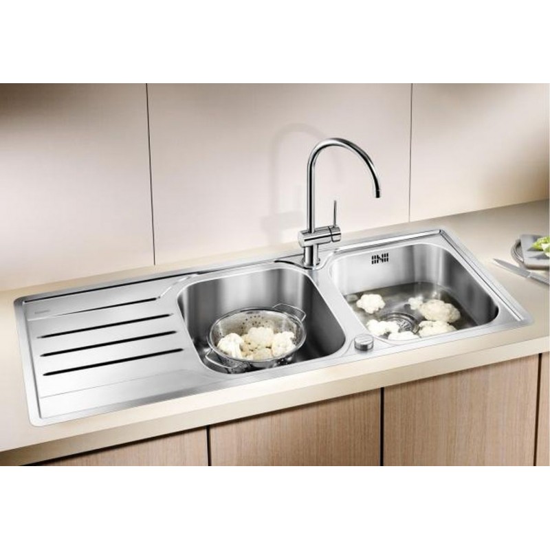 außergewöhnlich Edelstahlspülebesonders große Beckengeräumige Abtropfflächebei IF-Flachrand: eleganter, flacher Rand um Schmutzfugen zu vermeiden.
