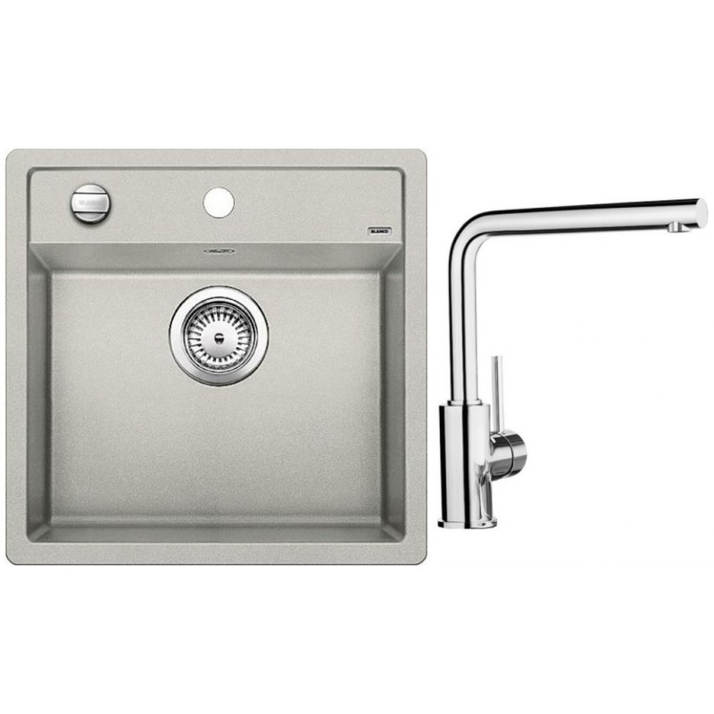 BLANCO SET Silgranitspüle DALAGO 5 perlgrau + Küchenarmatur MILA chrom