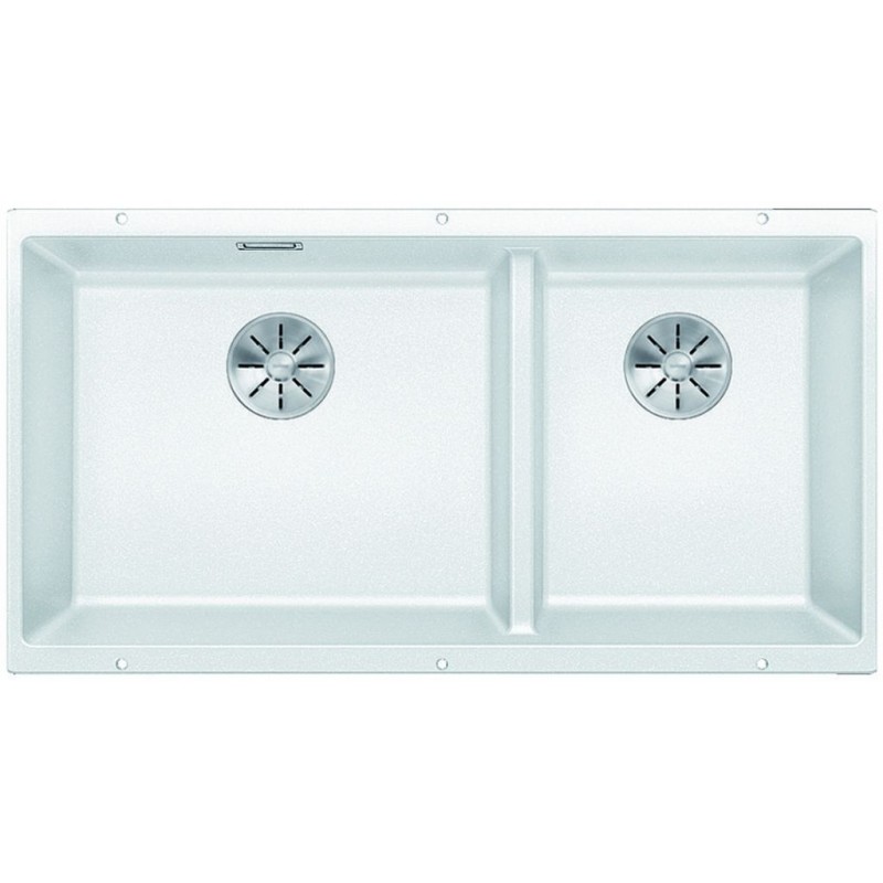 BLANCO SUBLINE 480/320 U InFino Silgranit Becken links weiss 523588Doppelspülbecken - links ohne Exzenter absinken - Boden unter die Platte montieren