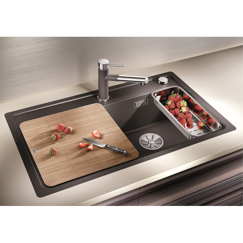 BLANCO ZENAR 45 S Silgranit PuraDur 2 Holzschneidbrett anthrazit InFino Ablauf 523737