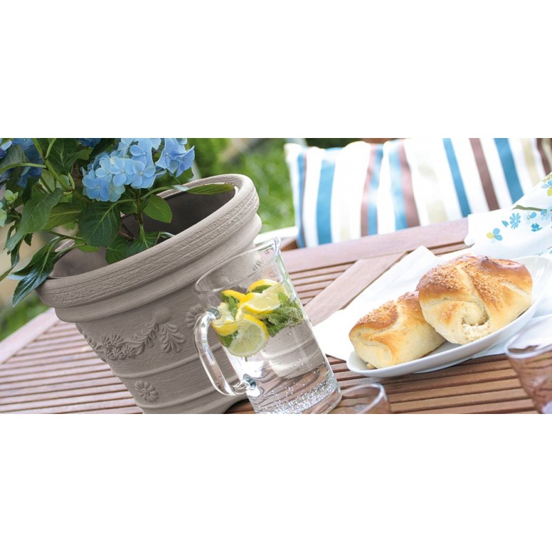 Stabiler robuster Blumentopf für Balkon, Terasse, Garten .... Wunderschöne massive Optik mit traditionellen Ornamenten. Diese verleihen dem Topf eine edle Ausstrahlung. Gefertigt aus hochwertigen PP Kunststoff. Das Material ist Schlagfest und Frostsicher. Durch die doppelwandige Ausführung entsteht der optische Eindruck eines massiven Tontopfes.Durchmesser: 300 mm
