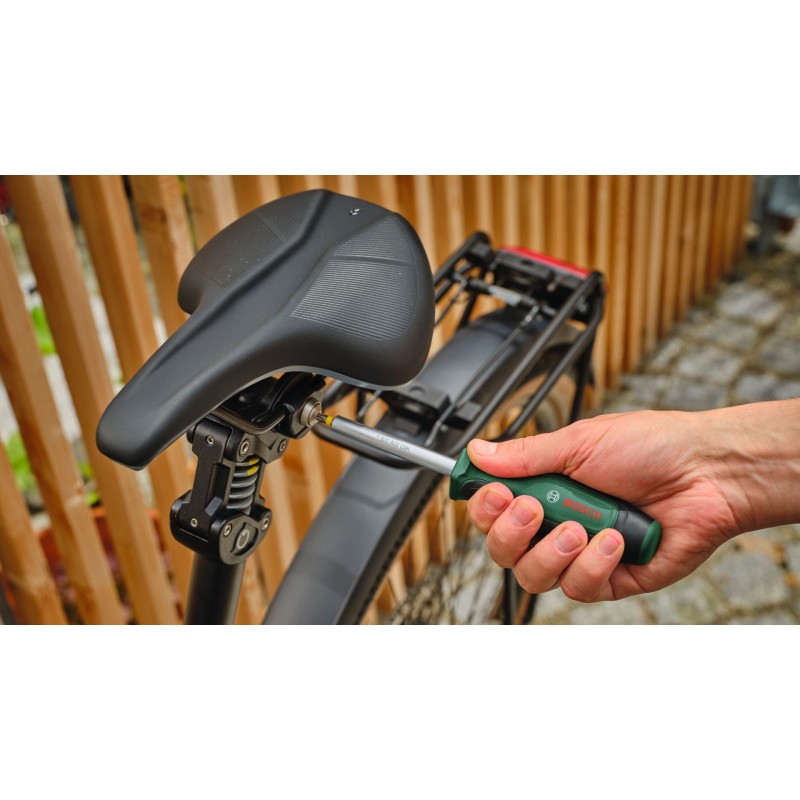 Erledigt alle möglichen Befestigungsarbeiten schnell und effizient mit dem hochwertigen Bit-Schraubendreher von Bosch. Er bietet eine komfortable und bequeme Möglichkeit, Reparaturen schnell und effizient durchzuführen und eine Vielzahl anderer Heimwerkerarbeiten zu erledigen. Dieser Bit-Schraubendreher verfügt über einen kompakten, ergonomischen Zweikomponenten-Griff mit Softgrip-Bereichen, der optimalen Komfort und Kontrolle gewährleistet. Die Bits bleiben dank eines starken magnetischen Bithalters im robusten Schaft fest an Ort und Stelle, was ein hohes Drehmoment von bis zu 21 Nm ermöglicht. Der sechseckige Griff verhindert ein Wegrollen.