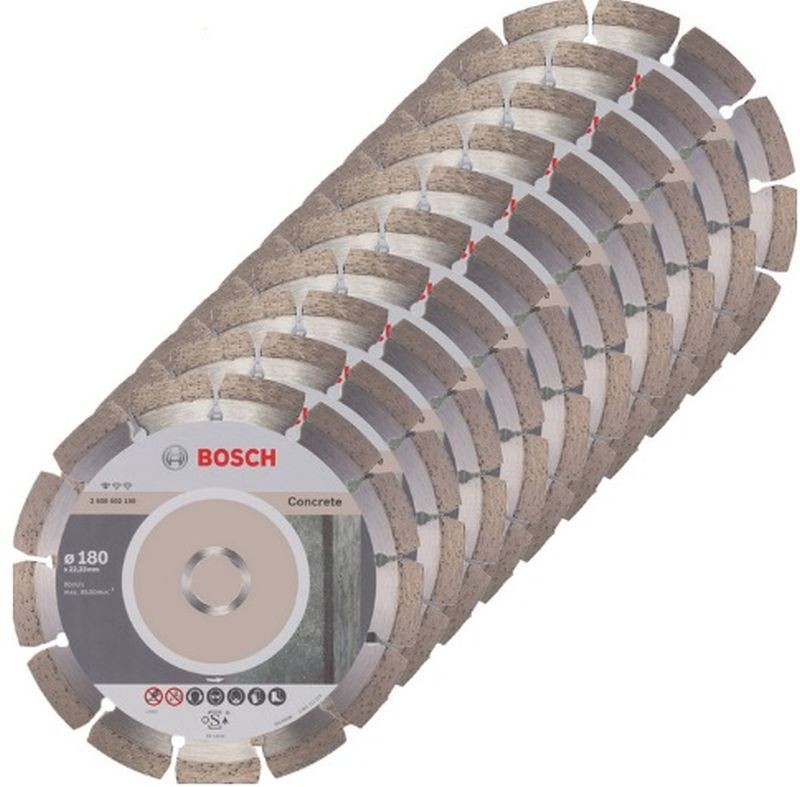 BOSCH Diamanttrennscheibe Standard für Concrete, 180x22,23x2x10 mm, 10-er Pack, 2608603242