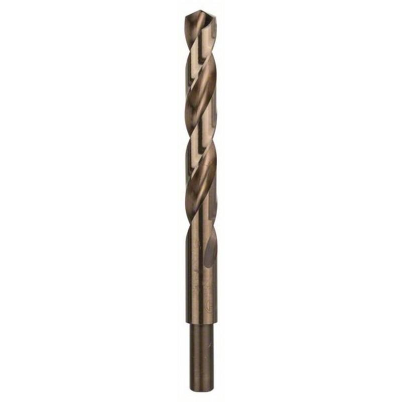 Metallbohrer HSS-Co, DIN 338. Der Experte für harte, zähe Stähle. Ein präzisionsgeschliffener, rechtsdrehender Spiralbohrer aus Hochleistungsschnellstahl, aus dem Vollen geschliffen. Sicheres Anbohren ohne Vorkörnen und hohe Rundlaufgenauigkeit zeichnen diesen Bohrer aus. Geeignet für legierte und unlegierte Stähle, rostfreien Stahl (V2A/V4A) und Gusseisen. Auch im Set erhältlich. Nur mit Kühlmittel arbeiten!. Selbstzentrierende Bohrspitze mit 135°, Kreuzschliff nach DIN 1412 C. Bohrerfarbe bronze. Legierter Stahl. Rechtsschneidender Spiralbohrer.