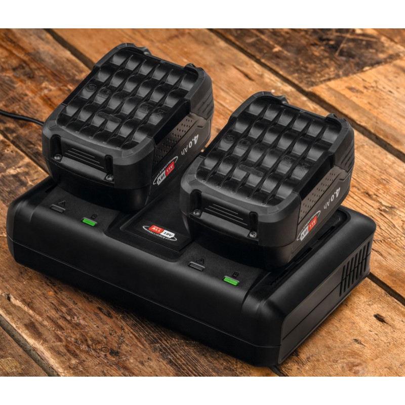 - Zwei 18-V-Akkus liefern eine 36-V-Leistung und sorgen für eine längere Laufzeit