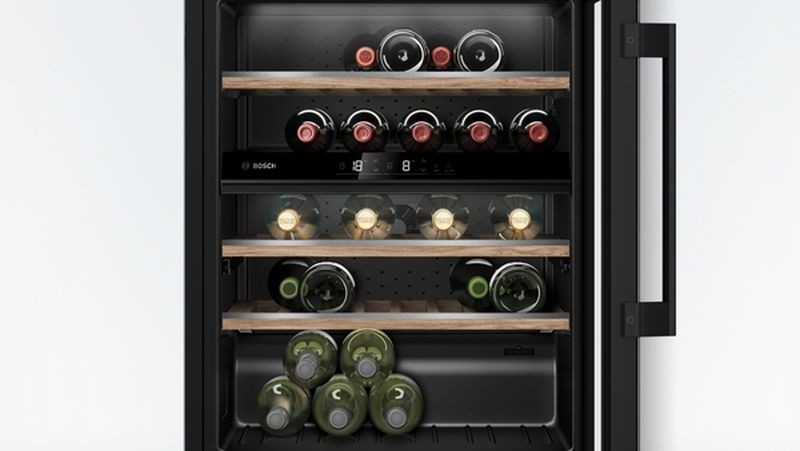 - Der geräumige Weinkühlschrank bietet Platz für bis zu 44 Flaschen, bei perfekter Trinktemperatur.