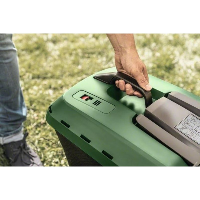 Intuitive Höhenverstellung, faltbarer Grasfangsack, modernes Design – Machen das Rasenmähen jetzt noch einfacher und unkomplizierter. Schneiden und Sammeln in einem Arbeitsgang dank Powerdrive. Konstant hohes Drehmoment. speziell gehärtetes Stahlmesser und die innovative Luftstromtechnologie sorgen für hervorragende Schnittleistung und Schnittgutaufnahme. Höhenverstellung (Universal): Ganz bequem die Schnitthöhe ändern. Ein integriertes System macht das Einstellen der Schnitthöhe deines Mähers leichter als je zuvor. Durch einfachen Tastendruck lässt sich die Schnitthöhe in sieben Stufen von 25 bis 80 mm verstellen. Ergoflex (Universal): Mit weniger Anstrengung. aber maximaler Kontrolle mähen. Mit dem Bosch Ergoflex-System ist es ein Kinderspiel. deinen Rotak zu steuern und die Arbeit schnell zu erledigen. während gleichzeitig dein Rücken geschont wird. Der Holmgriff unterstützt eine gute Körperhaltung und verringert die Beanspruchung von Armen und Rücken. Mehrfach platzierte Bedienschalter bieten maximalen Komfort. LeafCollect: Mit dem Rasenmäher effektiv das Herbstlaub einsammeln. Das Bosch LeafCollect-Messer wurde speziell entwickelt – Neben einem exzellenten Frühjahrs-. Sommer- und Herbstschnitt ermöglicht es das Aufnehmen und Häckseln von Herbstlaub auf deinem Rasen und ein einfaches Entsorgen des Schnittguts mit dem Grasfangkorb. Faltbarer Grasfangsack (Universal): Bequem zu verstauen. Der faltbare Gewebe-Grasfangsack spart Platz bei der Aufbewahrung und bietet ein Fassungsvermögen für 50 Liter Schnittgut. ProSilence und komfortable Ausstattung. Grasfangbox 50 l.