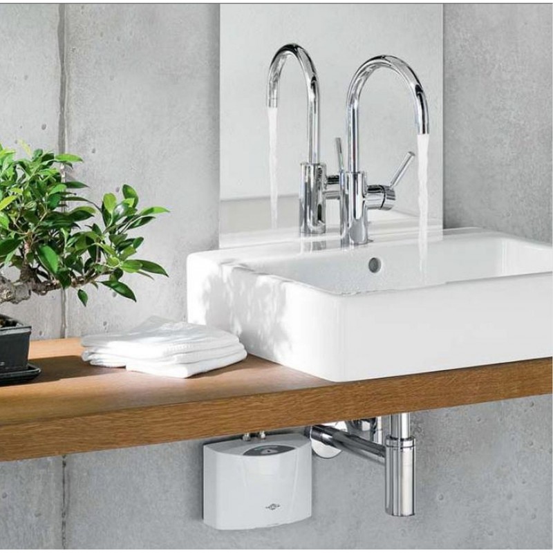 Die Erwärmung des Wassers erfolgt direkt beim Durchströmen ohne Vorratsspeicher und ohne Bereitschaftsenergieverluste. Die volle Heizleistung wird automatisch bei Erreichen der Einschaltwassermenge aktiviert. Durch die dezentrale Installation nahe der Zapfstelle werden Leitungsverluste reduziert und der Energieverbrauch gesenkt.