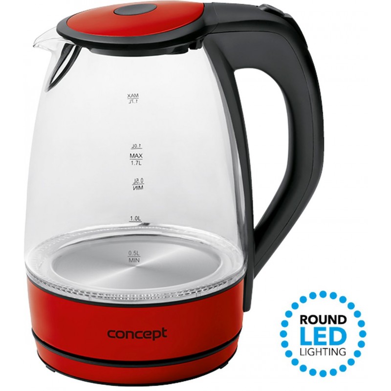 - Pro odeslání do Česka navštivte CONCEPT RK-4030re Rychlovarná konvice skleněná 1,7 l červená rk4030re