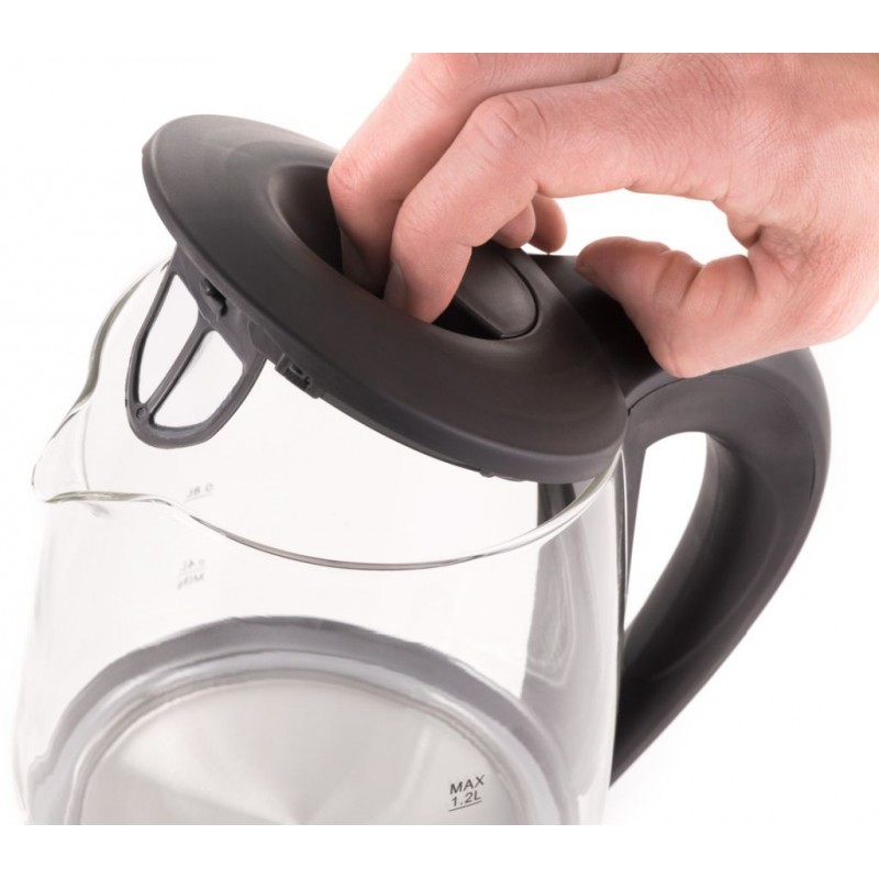 Attraktiver Glas-Wasserkocher mit Füllmenge 1,2 Liter a Anti-Kalk-Filter