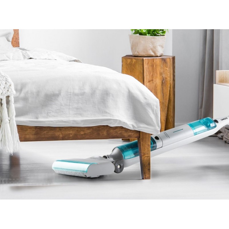 Sie wischen stets mit sauberem Wasser dank des Doppelbehälters und sparen dabei bis zu 90 % Wasser. Mit einer Laufzeit von 35 Minuten reinigen Sie mühelos bis zu 75 m2. Das leichte Design und die wendige Bodendüse machen die Anwendung kinderleicht.