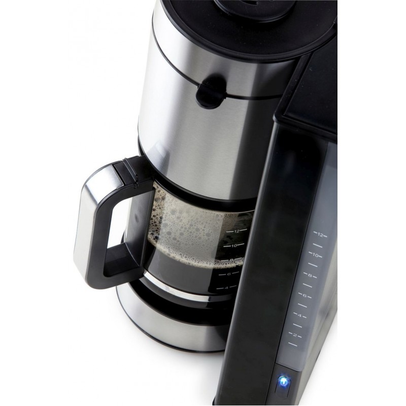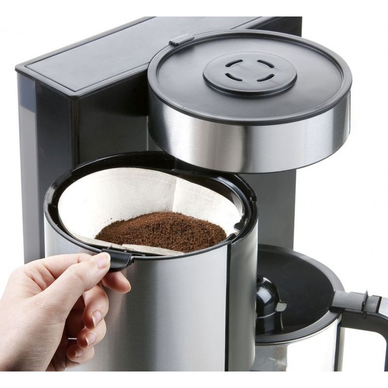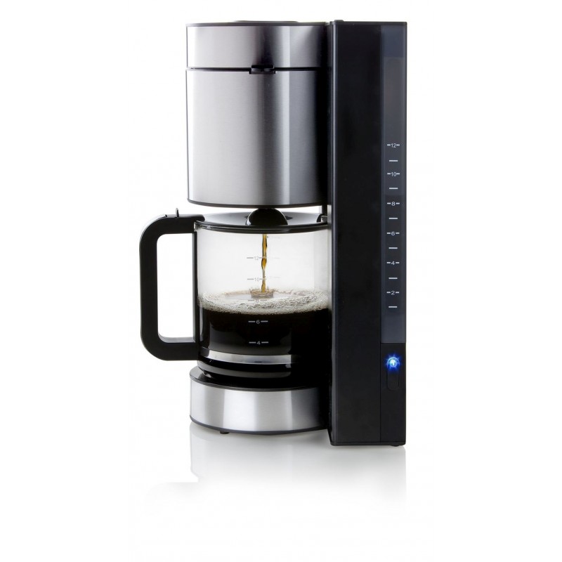 DOMO Kaffeeautomat URBAN DO704KMit dem Domo DO704K Kaffeeautomat URBAN ist in Zunkunft für bis zu 12 Tassen Kaffee gesorgt. Der Schwenkfilter mit Tropfverschluss sorgt für eine saubere Arbeitsumgebung, da er verhindert dass nach Kannenentnahme Restkaffee heraustropft. Durch die außenliegende Wasserstandsanzeige haben Sie jederzeit einen Überblick über den Brühvorgang.