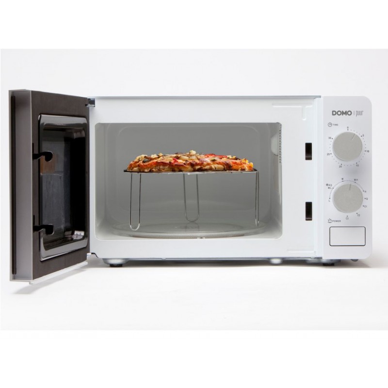 Kombi - Mikrowelle DOMO puur DO2328G - Mit der Mikrowelle jederzeit Essen und Nahrung schnell erhitzen und garen. Ihnen stehen 5 verschiedene Leistungseinstellungen zur Verfügung. Darunter befindet sich die Auftaufunktion mit der Sie eingefrorene Gerichte ganz einfach wieder auftauen können, sowie die Grillfunktion inklusive Grillrost. Dazu kommen noch 3 Kombinations - Einstellungen und ein 30 - Minuten- Timer. Der Glasdrehteller hat einen Durchmesser von 24,5 cm. Die Mikrowelle wird mechanisch bedient. Sie können Ihr Essen jederzeit genießen ohne den Herd zu nutzen.