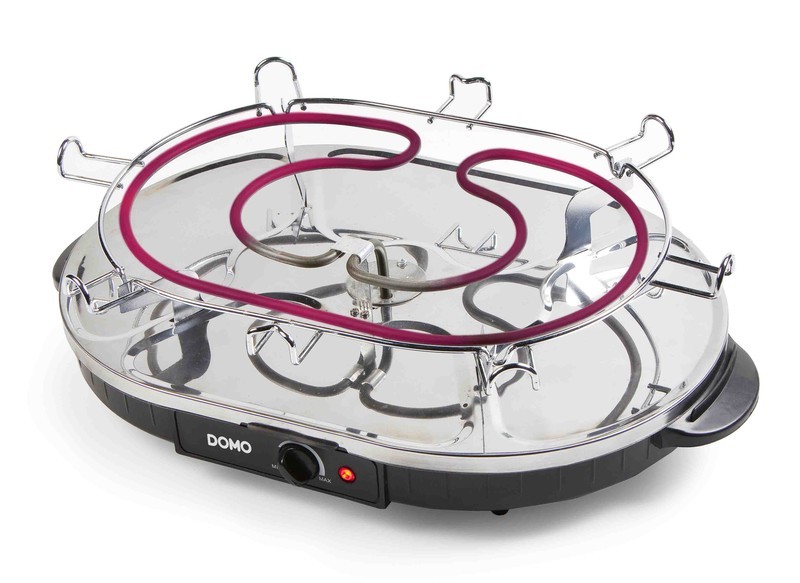 Elektro Raclette-Grill - DOMO DO9059G - In der kalten Jahreszeit und besonders zu Weihnachten und Silvester ist es sehr beliebt. Raclette! Jeder am Tisch kann seine Pfanne mit seinen Lieblingszutaten befüllen und mit leckerem Käse überbacken. Es ist ein sehr abwechslungsreiches Essen und auch ideal für einen Abend mit Freunden. Raclette ist auch besonders bei den Kleinen beliebt, da das Essen selbst gestaltet werden kann und jeder sein Pfännchen mit dem Lieblingszutaten füllt. Dieser große Raclettegrill ist geeignet für bis zu 8 Personen. Durch die Steingrillplatte ist ein fettfreies Braten möglich. Die abnehmbare Steinplatte macht eine leichte und schnelle Reinigung möglich. Dieser Partygrill ist mit wenigen Handgriffen zerlegt und auch leicht wieder zusammengesetzt.Artikelmerkmale: