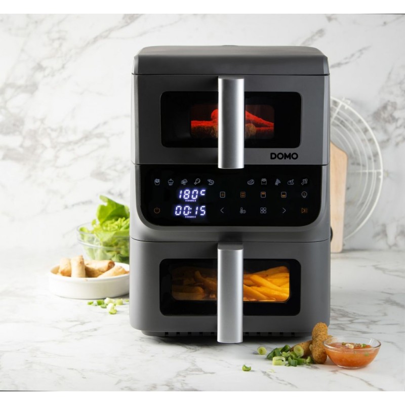 DOMO Vertikale Doppel-Heißluftfritteuse DO550FR – smartes Kochen in zwei Zonen mit maximaler Kontrolle