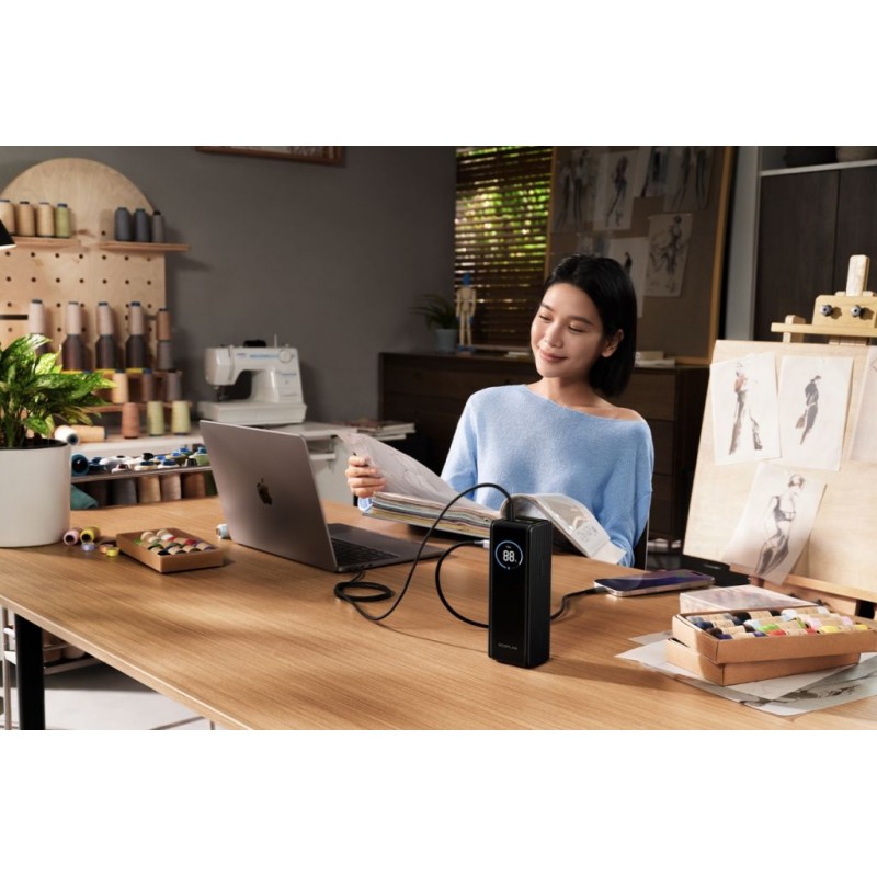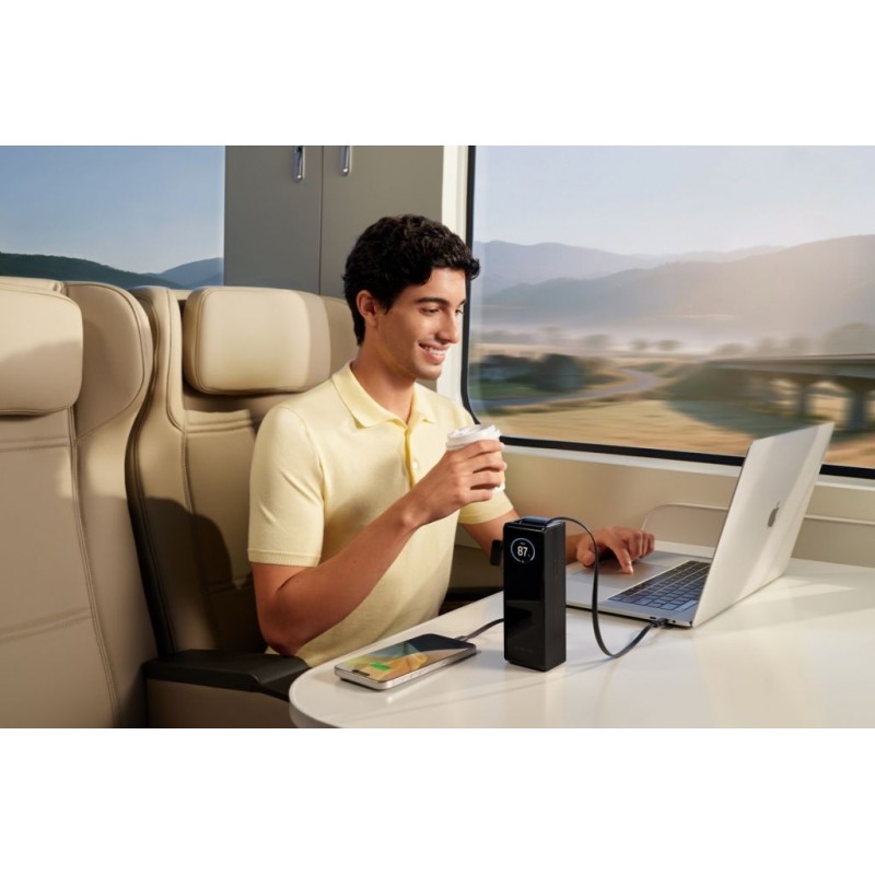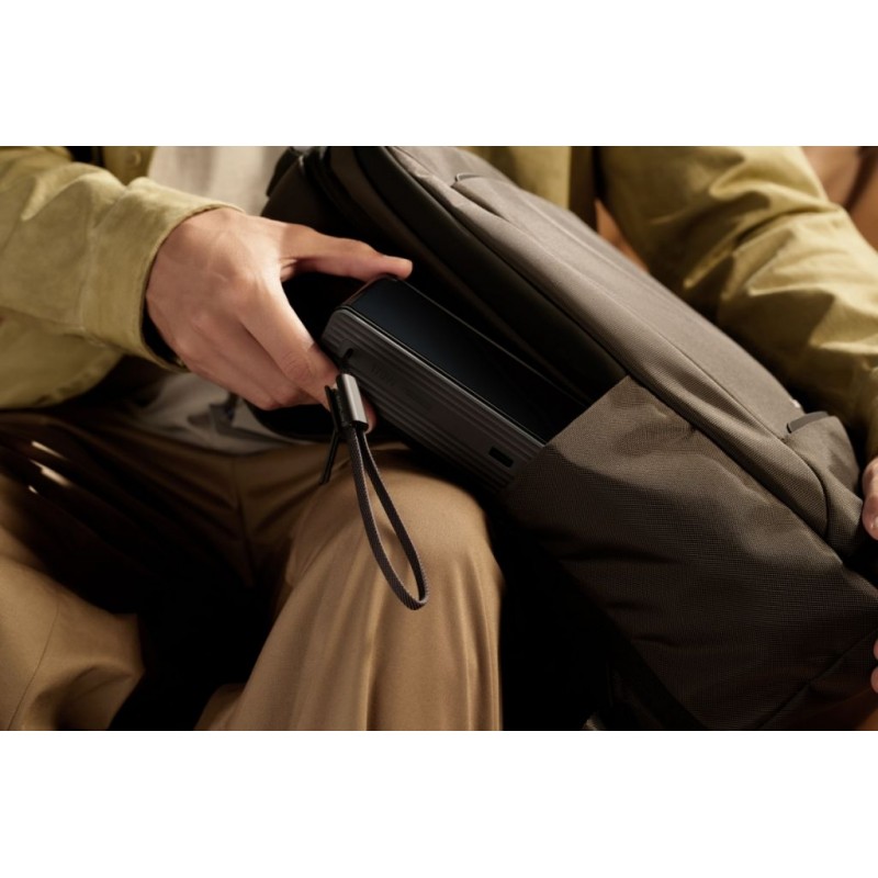 Nie mehr verlorene Kabel – zwei integrierte 100 W USB-C Kabel mit Aufrollmechanismus und Schlaufe sind immer griffbereit, ordentlich im eleganten Design der Powerbank verstaut. Der Aufrollmechanismus ermöglicht den Zugriff auf die Energieversorgung innerhalb weniger Sekunden.