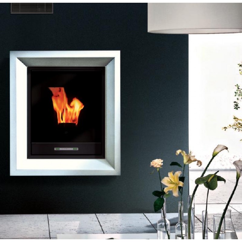 Gusseisen Frontschürze und Aluminium Wärmetauscher, keramische Auskleidung in Farben: ambra, weiß, gewürzt und rot. System Leonardo. Fernbedienung im Preis. Schlatplatte mit Display, Zeitprogramming, automatische Diagnosis, automatische Reinigung des Verbrennungsplatz, mögliche Bedienung über GSM.