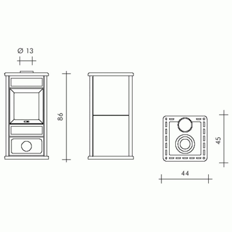 Luftgeführte Kaminofen EDILKAMIN MISS mit einfachem Design, Verkleidung - keramische Fliese, Front und Türrahmen aus Gusseisen, Heizraum Scamolex. Scamolex - mineralisches Material mit erhöherem Isolationsvermögen, das ermöglicht Erzielung höchsten Temperaturen drinnen im Ofen bei Optimalisation der Verbrennung und Reduktionen der Emissionen.