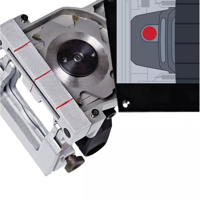 Flachdübel-Verbindungen sowie Nuten lassen sich präzise und ohne Verrutschen mit Hilfe der stufenlosen Höhenverstellung fräsen.