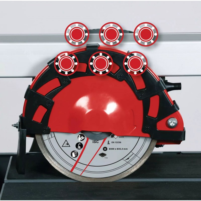 Die Einhell Radial-Fliesenschneidmaschine TE-TC 620/1 U ist ein kraftvolles und zuverlässiges Gerät zum exakten Zuschnitt von Wand- und Bodenfliesen. Mit ihrem 900 Watt starken Motor, der elektrischen Wasserkühlung und dem stufenlos schwenkbaren Motorkopf können selbst komplizierte Schnitte in diverse Fliesenmaterialien mit einer maximalen Schnittlänge von 620 mm und mit bis zu 30 mm Schnitthöhe durchgeführt werden.