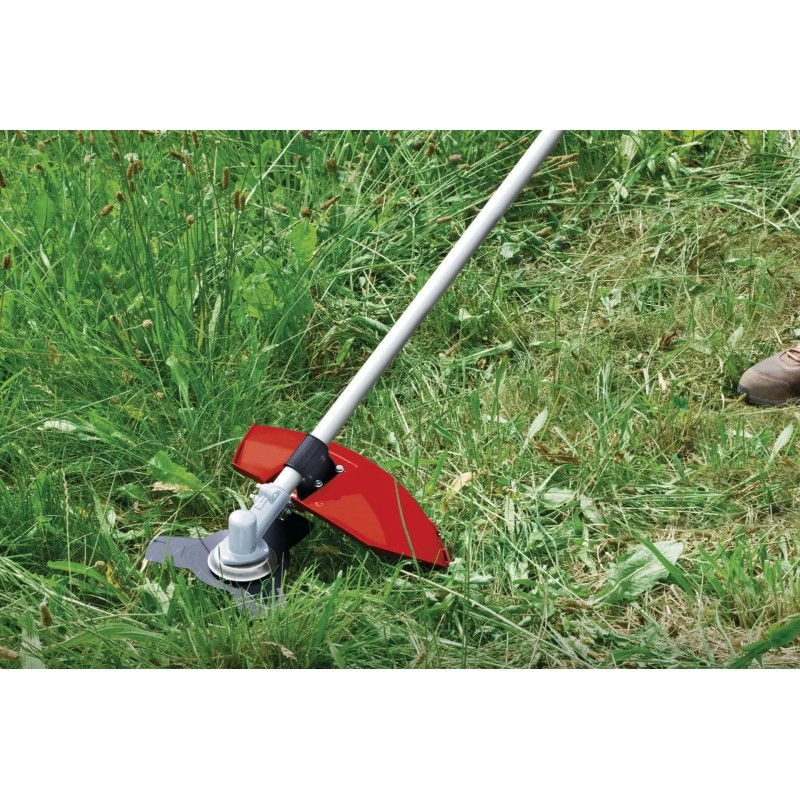 Die Einhell Benzin-Sense GC-BC 30/1 I AS ist ein beeindruckender Helfer. Ob unwegsames Gelände, Hänge oder Böschungen, mit einer Schnittbreite von 42 cm (Faden) oder 23 cm (Messer) meistert die Sense jedes Terrain. Für fachgerechtes Mähen kann die Benzin-Sense mit Messer oder Fadenspule bestückt werden. Ein 3-Zahn-Messer und eine Doppelfadenspule mit Tippautomatik sind bereits im Lieferumfang enthalten.