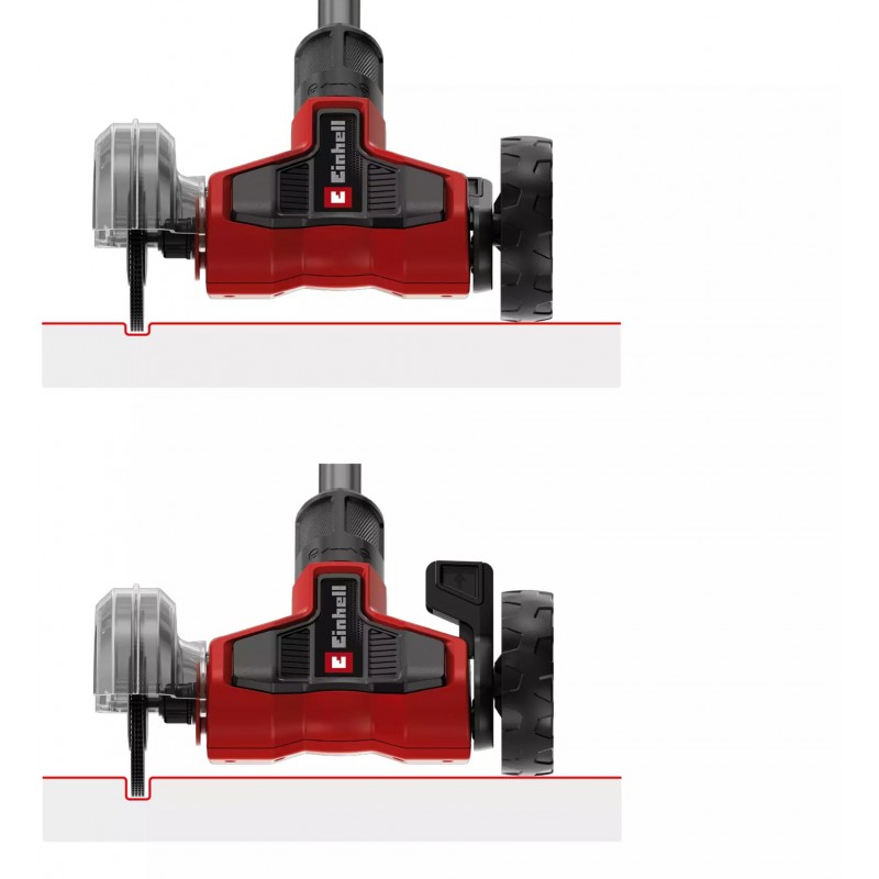 Das verstellbare Führungsrad der Akku-Unkrautbürste lässt sich werkzeuglos an jede Fugentiefe anpassen. So bleibt das Gerät stets parallel zur Fugenbürste und ermöglicht präzises Arbeiten auf gleichbleibender Höhe zum Rad für optimale Reinigungsergebnisse.